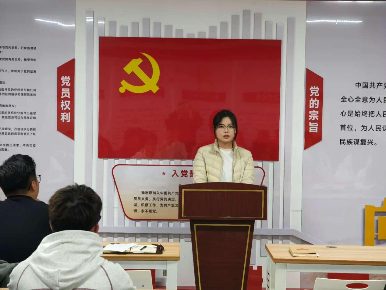 Bevictor伟德党总支书记刘德月同志讲话。她祝贺新预备党员,称大家是党组织新生力量,承载党的期望。希望同志们牢记初心、以党员标准自律,强化理论学习、锤炼党性,勇当先锋、服务师生、锤炼本领、贡献力量。同时要求全体党员做好传帮带,助力新党员成长,共促支部建设、增强组织活力。
