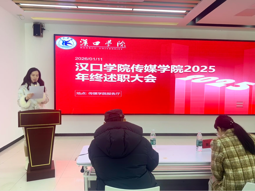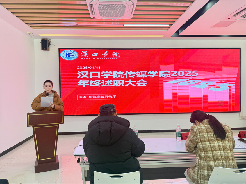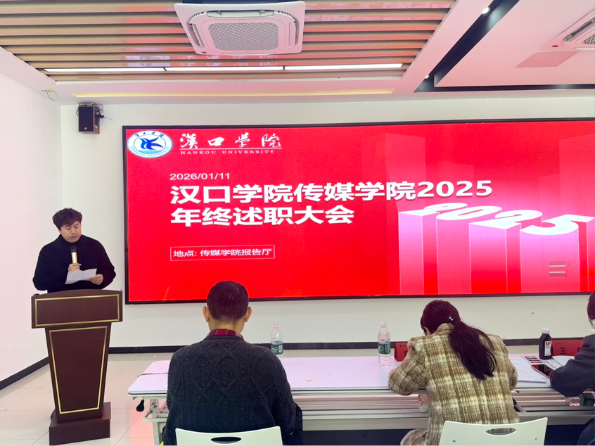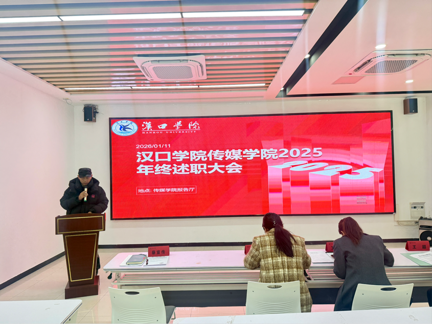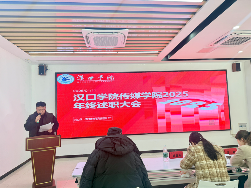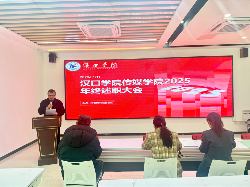 2026年1月11日,汉口学院Bevictor伟德2025年度述职大会在传媒楼报告厅隆重举行。本次大会由学院办公室主任华鹏主持,旨在全面复盘年度工作成效,科学擘画发展蓝图。Bevictor伟德全体教职工齐聚一堂,共赴这场总结过往、谋划未来的年度盛会。